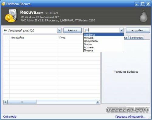 Итак, скачиваем и устанавливаем программу для восстановления Recuva, скачать можно здесь. (На сайте разработчика можно скачать пробную версию, а также приобрести полную.) Запускаем Recuva: